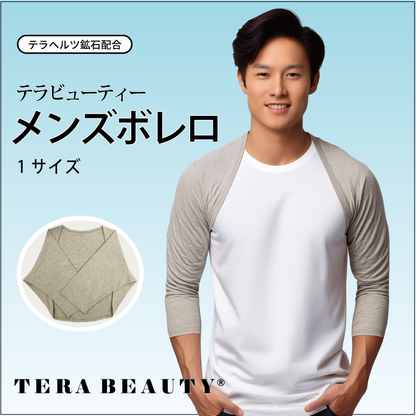 テラヘルツ生地を使用したメンズ用のボレロ。 首肩の凝りを和らげるサポーター感覚でお使いいただけます。 リカバリーウェアとしてもオススメいたします。 薄い生地なのでデイリー使いはもちろん、就寝時にもご使用いただけます。 レディース用もあります。 ※画像について お使いのブラウザや端末によっては色味などの見え方が現物と異なる場合がございます。