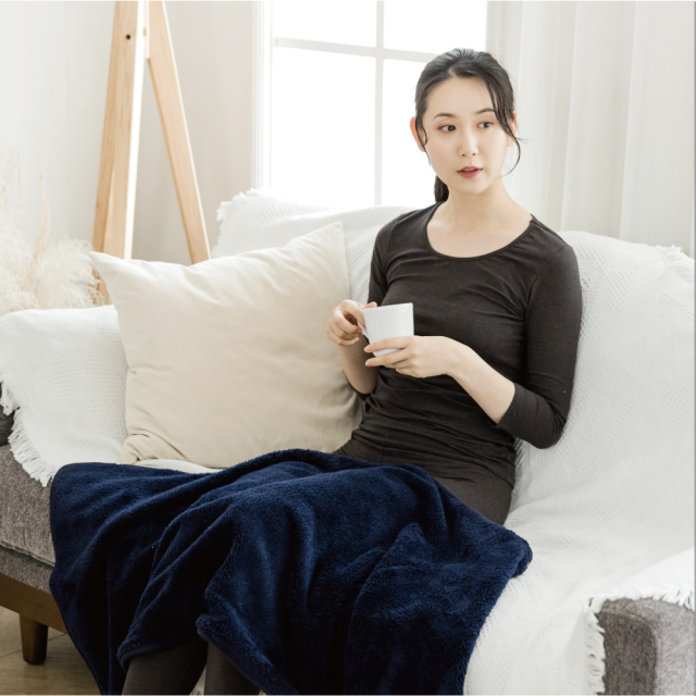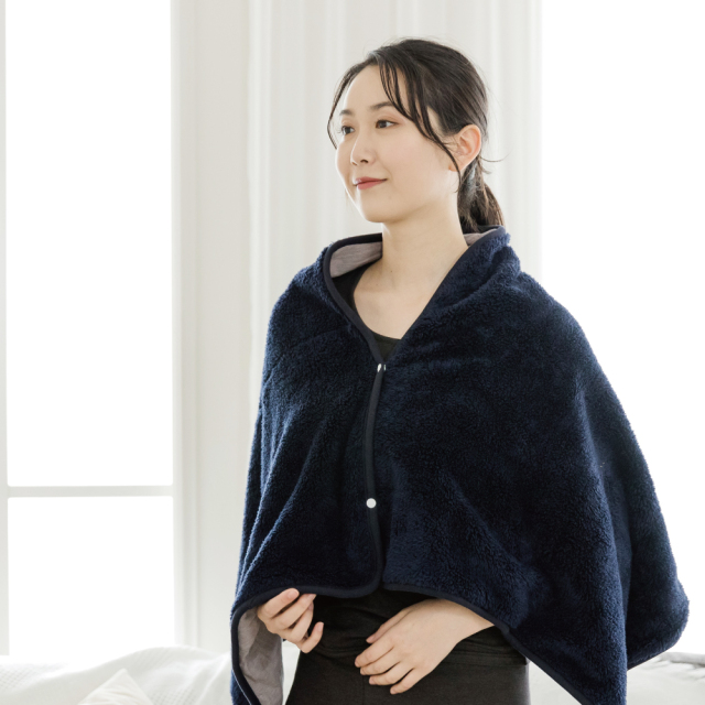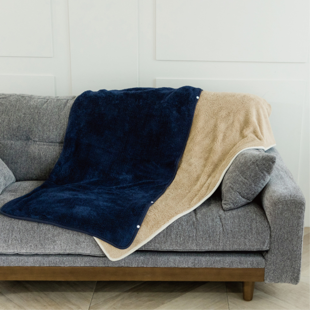 テラビューティーシリーズに「ストール」登場♪ 表はふわふわのボア。裏側はテラヘルツ生地。とっても軽くてスナップボタン付きです。 130cm×60cmと大判サイズなのでストールだけでなく、ひざ掛けや、ブランケット代わりにもご使用いただけます。 キャメルとネイビーの2色。